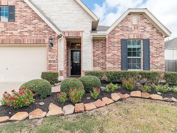 Welcome home to 1731 Lake Raven Dr in the highly sought-after Bayou Lakes community! This beautiful 1-story traditional home features a spacious open floor plan with high ceilings, a gas log fireplace, and a gourmet kitchen boasting two large islands, 42” gray-toned cabinets, granite countertops, stainless steel appliances, a gas cooktop, and a designer glass tile backsplash. A media room located off the great room is perfect for movie nights or entertaining guests. The private primary suite offers a luxurious bath with a garden tub, frameless glass shower, dual sinks, and a large walk-in closet. Generous secondary bedrooms provide flexibility for family or guests. Enjoy the oversized lot with a covered patio—ideal for outdoor entertaining! Conveniently located near I-45, shopping, dining, and community amenities including a pool, splash pad, and recreation area.