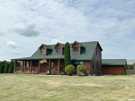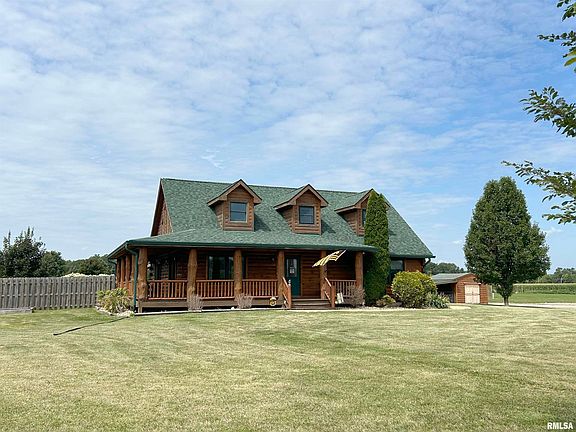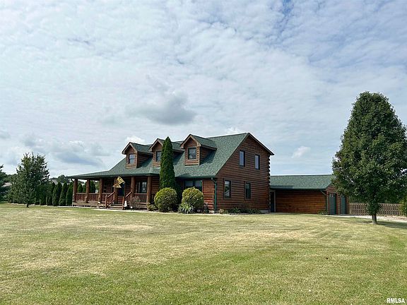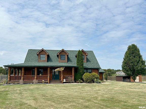 Discover the allure of country living in this enchanting cape cod style log cabin nestled on a lush 2-acre level lot. This picturesque property offers a serene escape with its own small pond, perfect for those who appreciate a touch of nature. Charming wraparound porch sets a welcoming tone, leading you into a large living/dining room area that boasts a soaring cathedral ceiling. The heart of the home, a cozy maple kitchen, features a stylish tile backsplash & modern stainless steel appliances. Practicality meets comfort with main floor laundry (including washer & dryer) and 2 bedrooms offering restful retreats on the same level. Venture upstairs & you'll find the spacious primary bedroom suite, a true sanctuary complete with a walk-in closet & a luxurious private bathroom. Here, a tiled shower, indulgent whirlpool tub & dual sinks create a spa-like vibe. For those with a creative streak, the partially finished lower level awaits your imaginative touch, potentially transforming into anything from a home theater, a family room or exercise room. Outside, the massive deck offers an idyllic backdrop for gatherings, overlooking a privacy fenced yard with a cozy firepit area - marshmallow roasting, anyone? The property also includes a 2-stall heated garage, perfect for hobbyists or simply keeping your vehicles snug in winter. Bonus storage shed with lean-to for yard tools. Updated in 2022 with new shingles & gutters, this home is primed for making new memories!