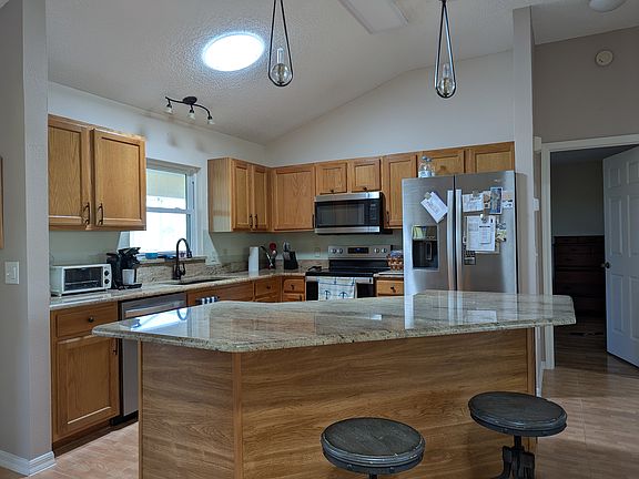 The modern kitchen features newer stainless-steel appliances while the open concept great room has two large solar tubes providing plenty of sunlight. The master bedroom suite with its queen-sized bed is on the opposite side of the home from the guest bedroom, office and bath, whose pocket door provides privacy from the living space.