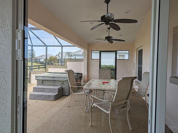 Enjoy all the amenities The Villages offers in this beautiful Amarillo designer home. Ride on over in the included golf cart to Spanish Springs Town Center (less than 2 miles away) or Lake Sumter (3.5 miles away) for live music and dinner. Return home to relax in total privacy in the glass enclosed lanai or outside in the hot tub of the large birdcage, both areas facing the tortoise preserve.
