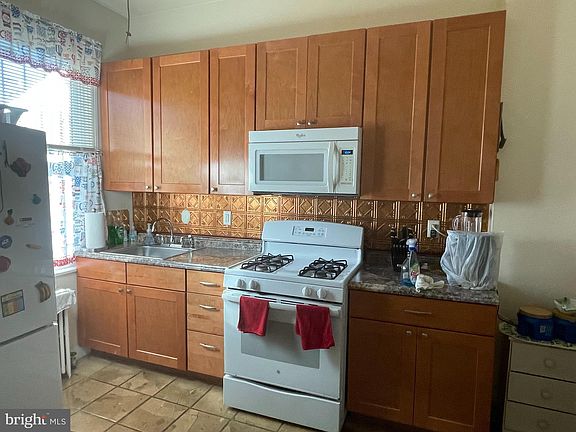 This is a great starter home, investor hold or investor flip. Located 2 blocks from Coppin State in the heart of the Coppin Heights development area. This internal row home has been very well maintained by its owner with updated kitchen and upper level full bathroom. Basement is mostly finished and DRY! Carpets throughout have likely preserved hardwood underneath (no guarantees). Front features the quintessential Baltimore, stained glass windows, covered porch and the rear features a small sunny balcony with stairs to the fully fenced yard/garden. Windows are double pane, vinyl. Water heater is new. Property being sold strictly AS IS.