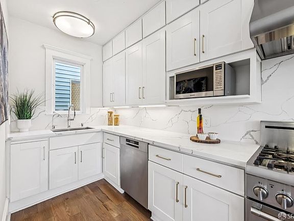 Quintessential and Updated to the Nines a San Francisco flat is here for the taking and the high life. Every inch of the home has been upgraded, from the kitchen, to the bathrooms, to the deck, and all the bells and whistles are loud and unassuming. Did I mention a View to die for?
