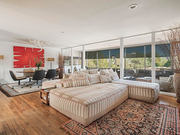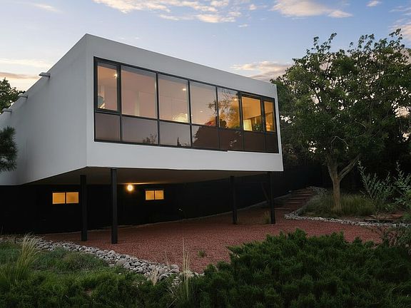 Experience timeless Modernism in this architecturally significant Harvey Hoshour residence. Perfectly sited in coveted Netherwood Park, this rare mid-century home embodies balance, proportion, and light. Two sculptural pavilions--public and private--are joined by a dramatic glass foyer, creating both separation and flow. A 40-foot wall of glass frames panoramic Sandia Mountain views, filling the living areas with morning light. Open-plan living and dining spaces invite effortless entertaining or quiet reflection, while the primary suite offers a serene retreat with its own sitting area and walk-in closet. Set on a quarter-acre lot with mature landscaping, patios, and private gardens, this is a rare opportunity to own a landmark of Albuquerque Modernism.