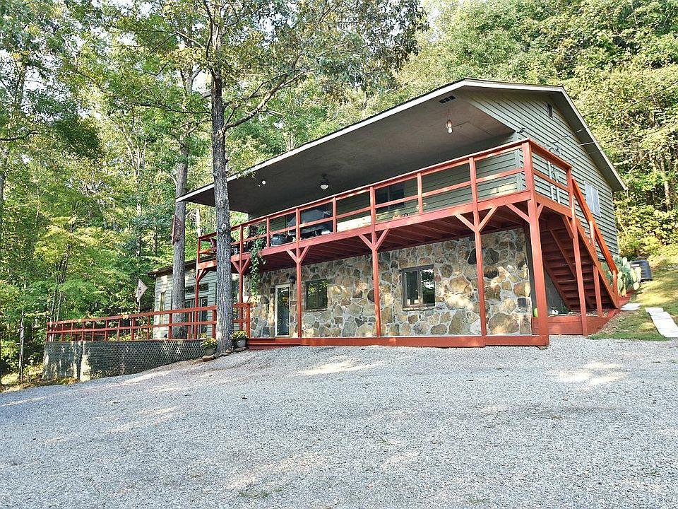 Own your own private retreat! You will feel like you are in a mountain chalet. Features include updated kitchen, extensive decking, an oversized den, a nice family room, 3 bedrooms and 2 baths. The owners are using the dining room as a living space right now. The detached garage is deep enough to hold 4 cars, there is extra storage other than the garage. Extremely private with 2 acres, call for your private showing today.