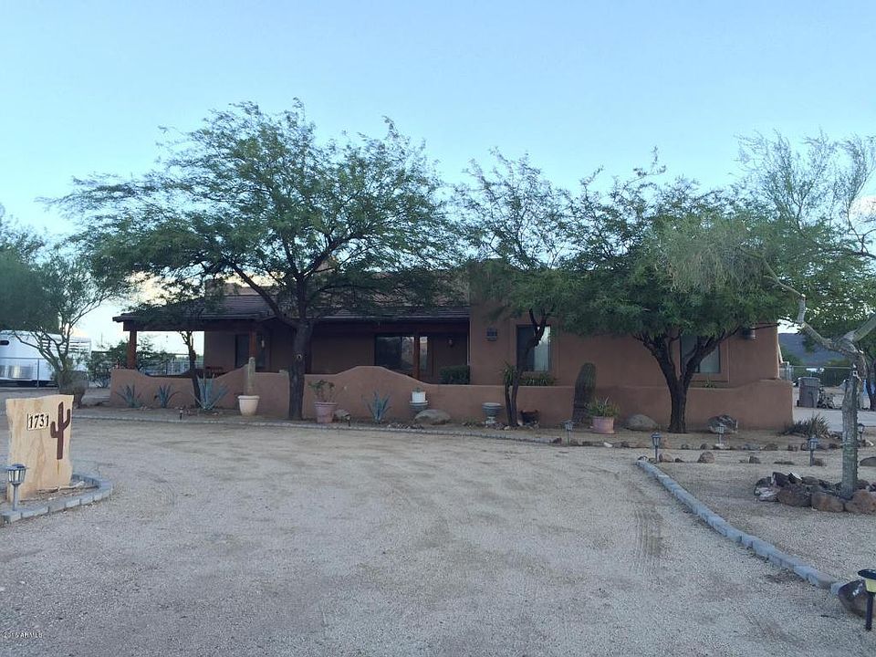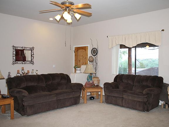 Desert Hills horse property w/stunning sunsets from your front & back porch patios. Split floor plan home has 3 bedrooms, 2 bathrooms in 1,707 SF w/9''+ ceilings on acre+ lot, 2-car garage & mountain views. Great room floor plan w/fireplace. Kitchen has breakfast bar, eat-in area, pantry, range/oven, disposal, dishwasher, & built-in microwave. Huge master bedroom w/walk-in closet; master bathroom has double sinks & NEW custom tile shower 2015. Inside laundry area. Tile in high traffic areas, carpet in rooms & ceiling fans. 2-car garage has attached cabinets. Fresh NEW interior paint & exterior wood painted October 2015. Backyard has extended covered patio, spacious yard, separate horse area & corral, RV gate & parking area, n/s exposure w/mountain views. No HOA fees! Quiet & peaceful...