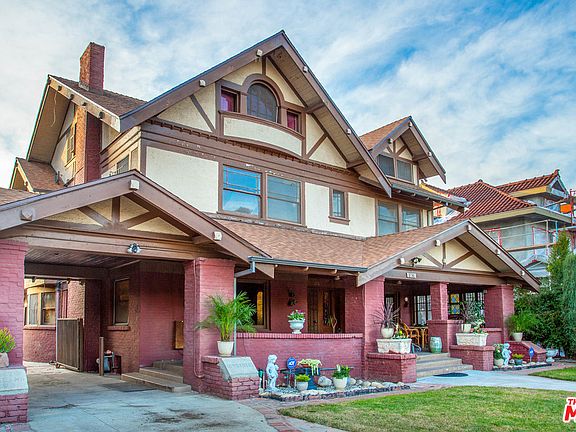 THIS is the one you've been waiting for! WOW! Historic detail galore! Big Craftsman house on HUGE lot!!! (Room for pool AND ADU!!) Handsome mahogany woodwork, leaded beveled glass plus stained glass--so much detail! Enter the large foyer flanked by the library with fireplace (historic tile) and bookcases with leaded glass doors....on the other side, the spacious living room with another --(even bigger) fireplace. The adjacent formal dining room with its spectacular china cabinet (more leaded and stained glass)is the perfect place for those holiday dinners! Butlers pantry, and really BIG kitchen--and that's just the first floor! Upstairs 4 spacious bedrooms, and 3 baths! To top it all off--a FINISHED third floor (former ballroom???) They DON"T make'em like this anymore! A little TLC will make this the JEWEL of Harvard Heights! Located in Harvard Heights HPOZ-unknown history of additions...No showings until December 1st