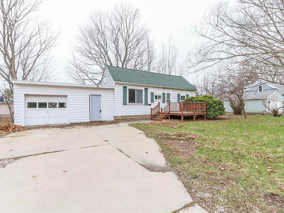 One story home with 2 bedroom - front yard deck, partial fence yard - attached oversized 1 car garage. Laundry hook up in basement. Location easy to walking path, park, convenience shopping. Lots of potential!