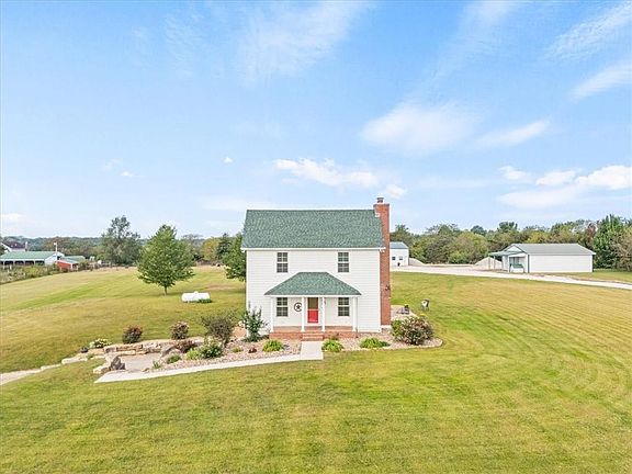 Countryside Retreat on 6.88 Acres M/L! This inviting home offers the perfect blend of space, comfort, and country charm. The main level features a large living room, formal dining room, open kitchen with breakfast area , and a family room, all designed for easy entertaining and everyday living. Step out onto the spacious screened-in porch or front covered porch to enjoy hilltop views of your property—perfect for relaxing mornings or evening gatherings. Upstairs, 3 generously sized bedrooms each with its own walk-in closet, while the finished lower level adds flexible living space with a versatile rec room, office, or guest suite. Outside, the property shines with a large 40 x60 heated outbuilding with concrete floor & bathroom, 30x36 barn with lean to, fenced areas ideal for animals or gardening, and room to spread out while still being close to town conveniences.