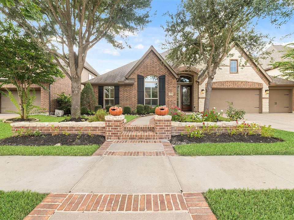 This beautifully maintained 4-bedroom, 3.5-bath home offers over 3,700 sq ft of luxurious living space, including a formal study, elegant dining room, expansive great room, and a versatile media/game room. Built in 2014 by Perry Homes, the home features rich hardwood flooring throughout, custom shutters, a water softener system, full-perimeter gutters and treated driveway with expansion joints preventing movement. The open floor plan and soaring ceilings create a bright, airy atmosphere, while the gas fireplace and spacious walk-in closets in every bedroom add comfort and charm. Step outside to a private backyard oasis with no rear neighbors, backing up to serene green space — perfect for relaxing or entertaining. The 3-car garage includes overhead rack storage for added convenience. Located in the sought-after Chacon Creek section of Lakeland in Bridgeland, this home offers access to top-rated Cy-Fair ISD schools, scenic parks, and resort-style pools.
