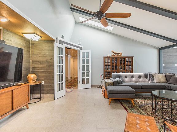 Spectacular single story main house is 2,693 Sq.Ft. with 4 Bedrooms + Office (or 5th bedrm) + 3 Bathrooms & Kitchen, also a (~500 Sq.Ft.) 1 bedroom, 1 bathroom permitted guest house with its own kitchen, laundry, and enclosed patio, plus a (~600 Sq.Ft.) 1+1 Detached home office / Work studio with its own kitchen. Newly redone driveway with brick pavers. The main house is absolutely gorgeous; enter into the dramatic living room with vaulted ceilings, skylights, and custom fireplace, this open concept is the perfect entertainment room. Stunning master bedroom with very special custom bath (2 many features). Updated kitchen w/custom cabinets & granite counter tops 5 burner gas stove, ceiling plank feature, recessed lighting & French doors and windows to Soak up the Zen in the stunning tranquil backyard. Gorgeous pool and spa with stone around the pool, and waterfall. Great sitting areas, outdoor kitchen with BBQ, and 2 bridges over a beautiful pond which leads you to the separate back lot with 1/2 basketball area and a detached one bedroom workshop/guest unit. This property has 3 kitchens total! Paid off solar! Cul-de-sac location!