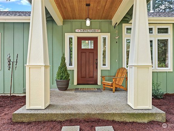 Lovely, remodeled rambler on 5 rolling acres w/country & updated conveniences. Great Room/kitchen space w/large windows, & highlighted by 10' ceilings & quality wood-look flooring. Kitchen w/quartz counters provide abundant prep & seating space, & indoor/outdoor living via sliding door access to the large 16'x40' Trex deck. 2 guest bedrooms separated by a full bath, laundry/mud room w/access to the drive-thru garage. Primary suite features oversized windows for natural light, 5-piece en-suite w/double sinks & tiled glass shower w/rain head, pass-thru closet, & sliding door to the deck. 2015-built home also boasts on-demand hot water, low-E windows, LED lighting, 4-bedroom septic, well-appointed chicken coop, split wood storage, & much more.