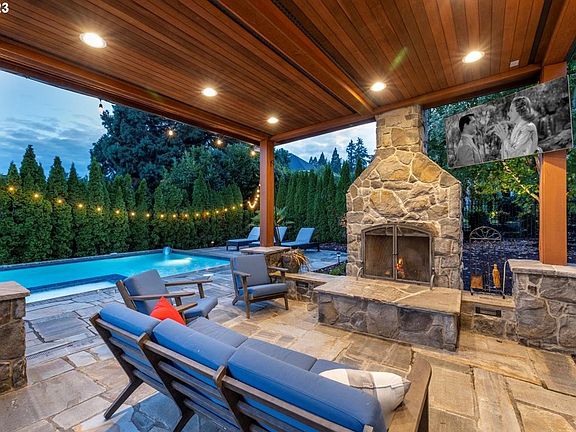 This Bergis Farms Estates location strikes a perfect balance between private, serene country living with convenient access to some of Lake Oswego's best amenities. It's just 1.5 miles from the heart of downtown but surrounded by rolling farmland. Built by long-time Lake Oswego resident and Olympic gold medal winner Don Schollander, this home offers a thoughtful feel of classic elegance with modern amenities. Soaring 19 ft+ entryway ceilings, rich cherrywood floors, and a grand staircase sets the tone of greatness. While the floorplan provides a highly valued mixture of "me time" privacy upstairs with the bedrooms to large shared "family" spaces for hanging out and entertaining downstairs. Outside features all the amenities to make great memories and build your community, starting with the heated pool and spa, complemented by the flat, sunny yard and a covered cabana with a grand fireplace. See for yourself why Bergis Farms Estates stands out as one of Lake Oswego's hidden gems.