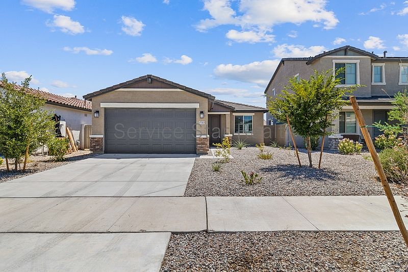 The backyard features a covered patio that overlooks a low-maintenance space with pavers and a bordered area of artificial lawn, complemented by accent plantings along the fence. This home is located in a brand-new community with excellent freeway access and nearby shopping and dining options.