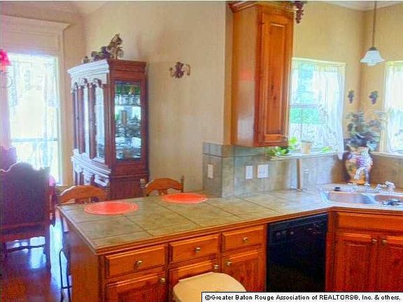 Beautiful well-maintained home in great neighborhood. Won't last long. This gorgeous 4BR/2BA home offers all wood floors in living room, all bedrooms & hall. Ceramic tile in Dining, Kitchen, Baths, Laundry. NO CARPET! Fantastic open floor plan with stunning custom cabinets, breakfast bar and tile countertops. Nine & Ten foot ceilings with beautiful thick crown moulding. Two large entertainment centers surround fireplace with custom mantle. Master Bath has large jetted corner tub, separate shower, double vanities and large walk-in closet. Almost maintenance free exterior with brick, vinyl siding, stucco. Note large lot--great for entertaining. Underground utilities, sidewalks, curb and gutter. Seller to provide Old Republic Warranty.