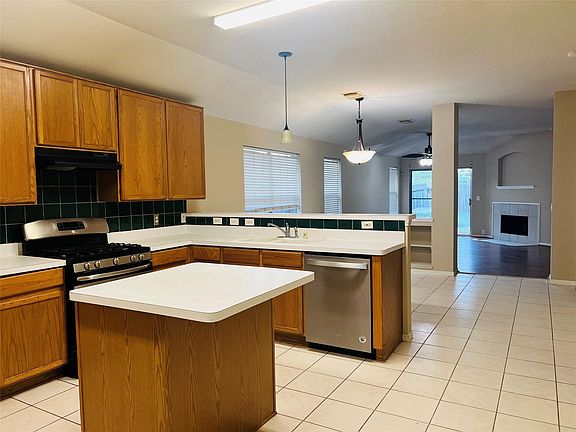 Charming 1-story home with an open layout, high ceilings & relaxing back patio! Island kitchen with wrap around breakfast bar that opens to the morning area & living room w/corner fireplace. Master suite w/dual sinks, soaking tub & separate shower! 3 secondary bedrooms offers plenty of additional space! Master-Planned Community with Houston National Golf Course, Splash Pad, 2 Pools, Tennis Courts & Lakes throughout the community! The home & community have so much to offer! Lake in Section!