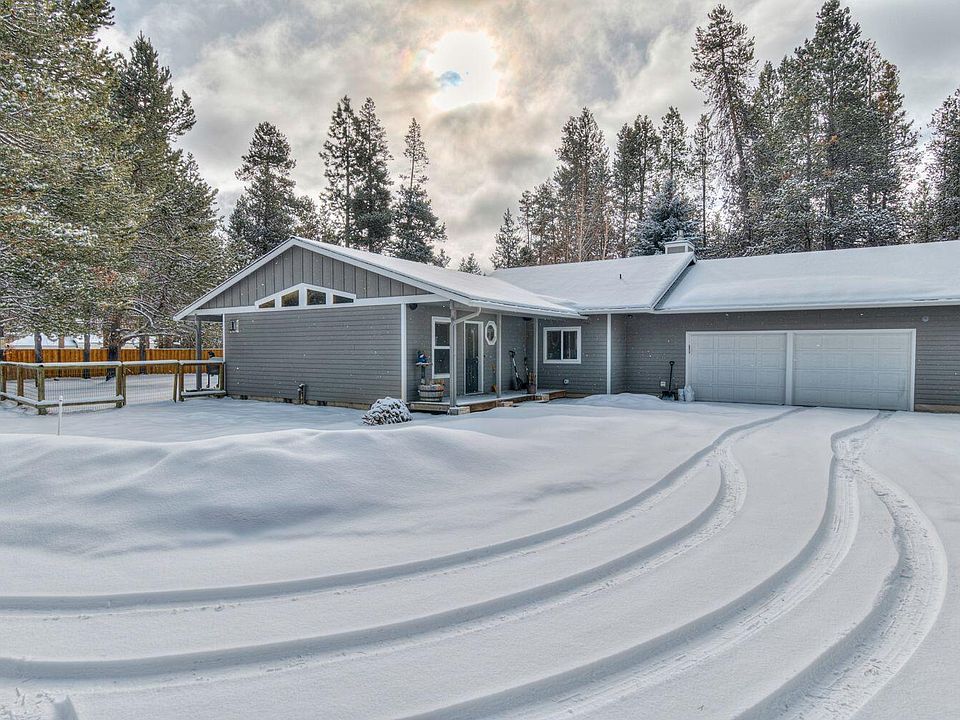Looking for a home in Central Oregon on .83 acre lot located near the Deschutes River. Sunriver, Mt. Bachelor and the high Cascade Lakes This home was remodeled in 2010 adding 900 sq ft to the living space. The kitchen has granite tile countertops, hickory cabinets, undermount lighting, heated tile flooring and stainless steel appliances. The great room has custom hickory cabinets, Floor to ceiling stone/gas fireplace and Hickory wood floors. Primary bedroom suite has a gas fireplace, remodeled bathroom with walk in tile shower, tile floors, double tile vanity with hickory cabinets, walk in closet and private entry to the back patio. Additional bedrooms share a bathroom with separate walk-in tile shower and soaking tub. The property is fenced with a large yard that has a greenhouse and wired for a hot tub. The 1600 sq ft RV garage is heated and has a workshop room with lots of additional storage for your toys. This home sets at the end of a cul-de-sac giving you privacy.