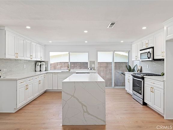 Spectacular mountain views! Fabulous single-story home features a brand new chef’s kitchen with quarts counters, quartz waterfall center island, stainless steel appliances, built-in microwave, tile backsplash and brushed gold hardware. New waterproof laminate flooring and fresh paint compliment the remodel. Dining options include a breakfast counter as well as separate formal dining space. This beautiful home is situated within Granada Hills premier neighborhood. Located north of Rinaldi and west of Balboa within the charter school district of Van Gogh Elementary. The double door entry leads to a foyer overlooking the naturally lit open floor-plan. Interior highlights include vaulted ceilings, recessed lighting, large living room with fireplace and separate spacious family room. The house offers almost 2,100 square feet of living space, four bedrooms and three bedrooms. The bathrooms have beautiful new vanities and fixtures. Spacious primary bedroom features its own private full bathroom with beautiful double vanity and new flooring. Entertainer's yard with bullnose brick accented sparkling pool and spa overlooks the gorgeous green mountains. The yard offers great potential for the addition of a deck thus expanding the already ample entertainer’s yard. Attached two car garage offers direct access to the home. Neighborhood benefits include quiet streets, O'Melveny Park, Bee Canyon as well as convenient access to freeways, shopping, and dining.