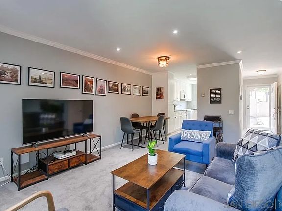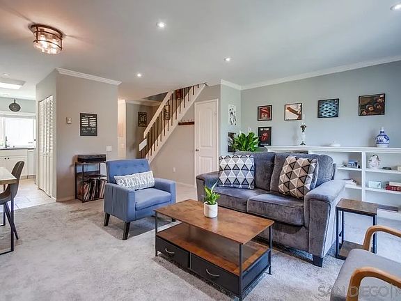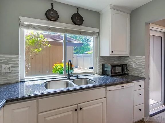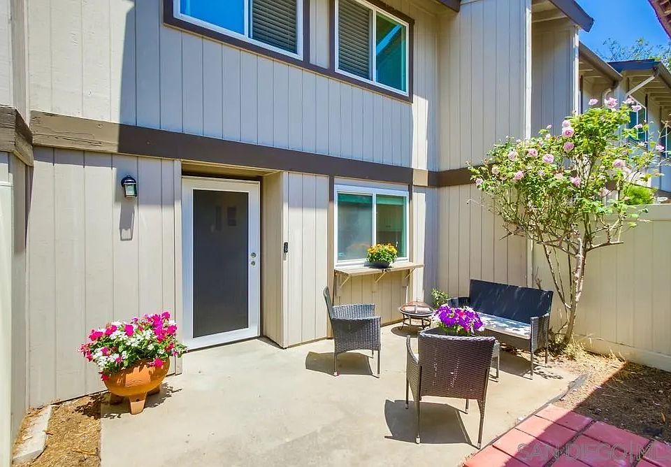Great location! This two-story townhome currently getting a brand new roof offers a spacious layout with a large living room, updated fireplace, crown molding, recessed lighting and newer interior doors. The kitchen features updated counters and backsplash, white cabinets, and a convenient indoor laundry area. Dual-pane windows and sliding door have been updated. Gated front courtyard plus a one-car garage with an extended driveway for extra parking. Private back patio with peaceful greenbelt view. Both bedrooms are upstairs with a Jack & Jill bathroom. Great potential with two private outdoor areas for entertaining in an unbeatable location! Enjoy access to the Westwood Club with pool, clubhouse, tennis courts, pickleball and more—all located in the award-winning Poway Unified School District.Located close to the Westwood Club- with pools, a fitness center, tennis courts, fields, shuffleboard, playground and much, much more! Located within the award winning Poway Unified School District . Nearby shopping, dining, hiking trails, very easy commuter freeway access. Quiet location with greenbelt views.
