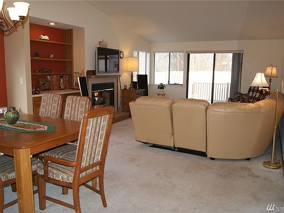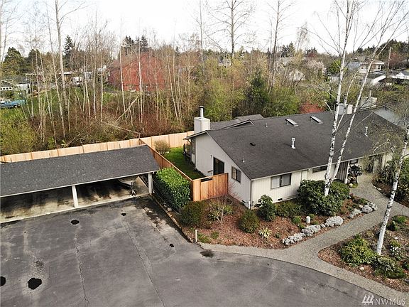 Bright and quiet end unit within 1-2 blocks of the bus stop, restaurants and shops in Vashon. These well-maintained condos boast large square footage at ground level. Includes a deck, an 8' X 12' shed and private fenced backyard bordering a greenbelt. 2 bedrooms, 2 baths plus a gas fireplace, vaulted ceilings and lots of windows give this home a feeling of light and spaciousness. Includes two covered parking spaces and a small community garden.