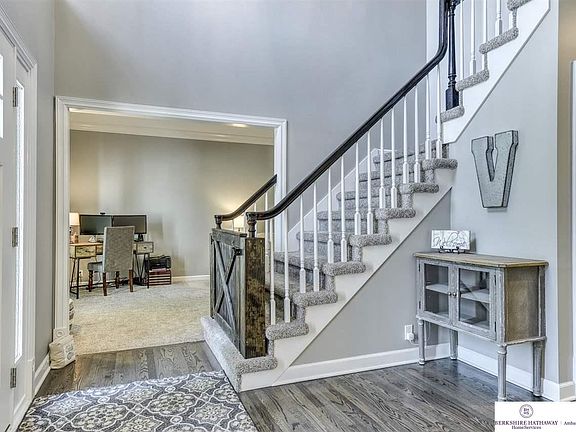 Showings start 12pm June 4th. Welcome to your next home! Beautiful, spacious 5 bed, 5 bath home in Autumn Ridge. Enjoy the curb appeal as you walk into the two story entrance with gorgeous hardwood floors that carry into the kitchen. Office and formal dining in the front of the home and spacious, updated kitchen with added large, walk-in pantry, updated backsplash, granite and painted cabinets. Cozy hearth room off the kitchen with fireplace. Upstairs you will find a huge primary bedroom, 3 more bedrooms and 3 bathrooms. New windows on main and upstairs in 2020. In the basement you will find a large family room, exercise area, wet bar, bedroom and 3/4 bath. Walk out into your private backyard lined with trees and fence. New exterior paint, roof and skylights in 2020. Whole house humidifier. Close proximity to elementary, middle and high school and to Lake Zorinsky! Don't miss out on this one! Home has been pre-inspected for your buyer! Professional photos by 6/4 evening.