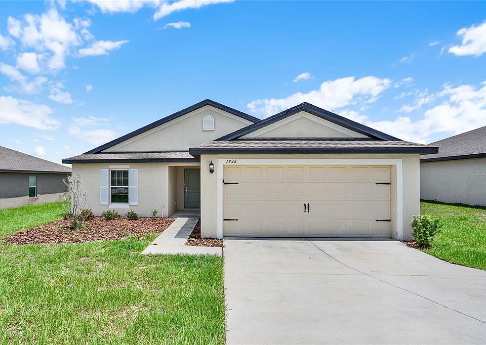 You don't want to miss this opportunity to make this 3-bedroom, 2-bathroom home your own in the serene community of The Ridge at Swan Lake. Built in 2020, this home features a modern split bedroom floor plan with an open concept living area that is bathed in natural light and adorned with bright, neutral fixtures throughout. The living areas are elegantly finished with ceramic tile, while all the bedrooms offer the comfort of plush carpeting. Upon entering, you are greeted by the formal living room on your left and a fully equipped kitchen on your right, complete with stainless steel appliances and a large granite wrap-around bar top. The conveniently located laundry room is just off the kitchen, leading to the spacious family room that opens up to a large backyard through sliding glass doors. The Primary Bedroom Suite, situated to the right of the family room, boasts a large walk-in closet and a spacious vanity. On the opposite side of the home, you will find bedrooms 2 and 3 along with the shared 2nd bathroom. The Ridge at Swan Lake offers residents breathtaking nature views, numerous lakes, and extensive walking and biking trails, all just minutes away from fine dining, shopping, Disney World, and LEGOLAND. This home also provides peace of mind with a roof, HVAC system, and hot water heater that are only four years old. Make this beautiful home your own and enjoy all the amenities and conveniences The Ridge at Swan Lake has to offer.