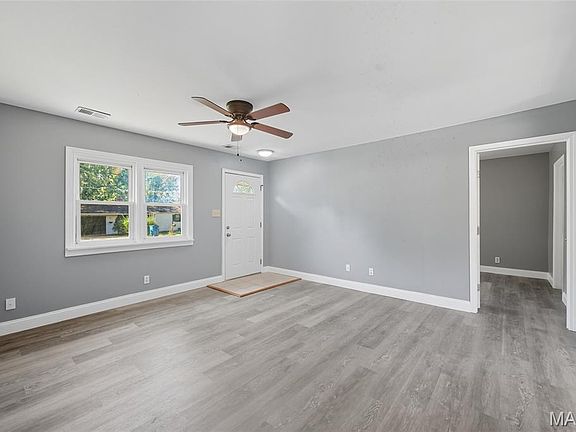 The interior boasts a versatile and spacious layout, with abundant natural light throughout, creating a bright and airy atmosphere. The home's ceiling fan and ample storage space, including customizable shelving, contribute to its functional and practical design. The primary bedroom and additional two bedrooms provide comfortable and flexible living spaces.