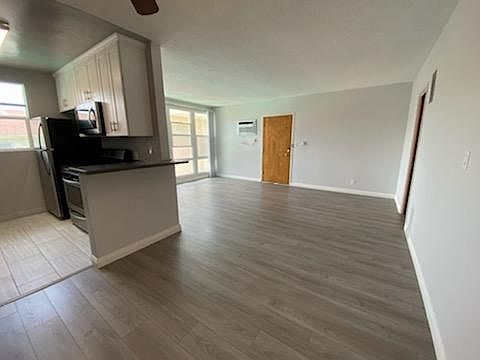 Renovated Upper Apartment 1 bed 1 bath Laminate Flooring Wall unit AC Ceiling Fan Secured Parking Onsite Laundry One year lease