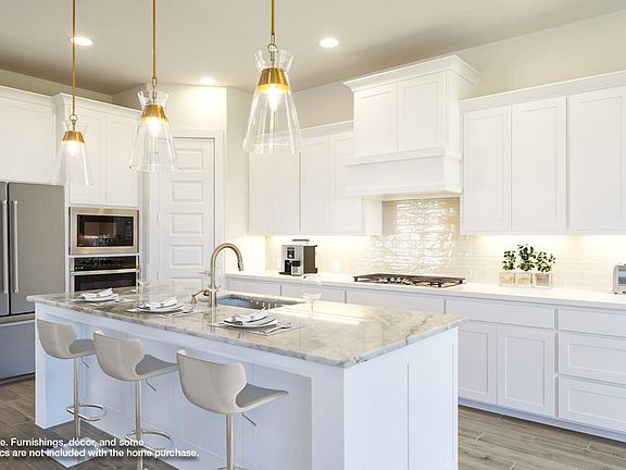 READY FOR MOVE-IN! Home office with French doors set entry. Media room with French doors off extended entry. Formal dining room flows into open family room with wall of windows. Kitchen features corner walk-in pantry, 5-burner gas cooktop and generous island with built-in seating space. Adjoining morning area features a coffee bar and wall of windows. Primary suite includes double-door entry to primary bath with dual vanities, freestanding tub, separate glass-shower and two walk-in closets. Guest suite offers private bath. High ceilings and abundant closet space add to this spacious four-bedroom design. Extended covered backyard patio. Mud room off three-car garage.