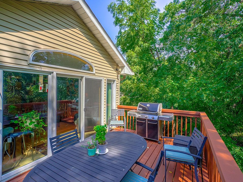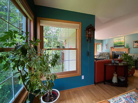 Tranquil wooded views from the recently refreshed, large deck and most living spaces. The rare setting creates a tree-house feel, ideal for birdwatching. The wall of glass faces southeast for lovely winter sunrises. The main level offers all of the amenities necessary for a comfortable lifestyle with a large owner's suite, open living dining area and a gas fireplace. The 2nd bedroom on the main level works well as a study. The large kitchen features stone countertops and added prep space on the movable island. The lower level offers a separate private bedroom and bathroom, a large family room with a fireplace and glass doors leading out to the wooded back yard. The owner's studio will be removed, but the temp wall can stay or go depending on how the buyer wants to use the space. Ample storage is available in the unfinished portion of the basement. See supplements for full list of features. New roof 2022, New garage door 2021 + more. Available for showings beginning August 31.