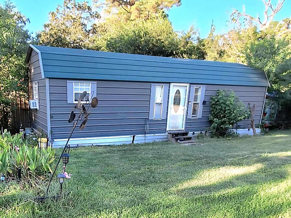 Welcome to this charming and fully furnished tiny home located in the peaceful community of Flint, Texas. Set on a 0.19-acre lot, this 455-square-foot residence maximizes every inch with a smart layout featuring 1 bedroom, 1 bathroom, and two versatile lofts perfect for sleeping, storage, or creative flex space. The home comes move-in ready with stainless steel appliances, including a cooktop stove, dishwasher, side-by-side refrigerator with filtered water, and a multifunction microwave that can bake, broil, or cook, plus a compact oven ideal for toast or small meals. Outside, you’ll find an impressive 11x20 general shelter's metal building complete with two windows, a large metal door, electricity, and partial insulation—perfectly set up as a laundry room with washer and dryer included. The spacious deck provides a peaceful spot to relax, enjoy nature, and watch the birds. With an efficient design and thoughtful upgrades, this property makes an excellent full-time home, weekend retreat, or short-term rental investment. Conveniently located near Lake Palestine, dining, and local amenities, this tiny home offers big comfort and endless charm.