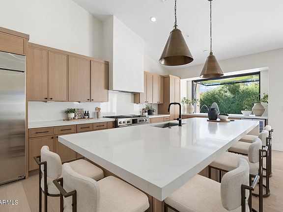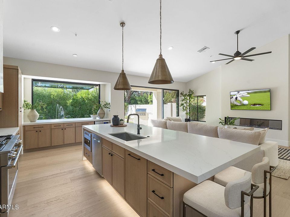 This 2025 high-end renovation is built to entertain and is truly stunning! Renovation included: smooth interior wall finish, hardwood flooring, modern style base boards, new roof, taller windows and doors, low maintenance artificial turf, high-end kitchen featuring Bosch DW, 48" GE Monogram 4 burner gas range, Custom Mini Garage door for indoor-outdoor entertaining, Beautiful high-end bath finishes. Organized closets T/O. EV READY 3 CAR GARAGE! North Scottsdale's luxury corridor! Close to all the events you come to Scottsdale for - shopping, dining at Kierland, WM Phx Open, golf at the TPC, Grayhawk, and Talking Stick. Hiking in the McDowells is just 8 minutes away via the Gateway TH. Whole foods, Trader Joes, luxury automotive just 5 minutes away! Just 10 minutes to the JSX airline lounge at Scottsdale airport! This home offers a real convenience and a