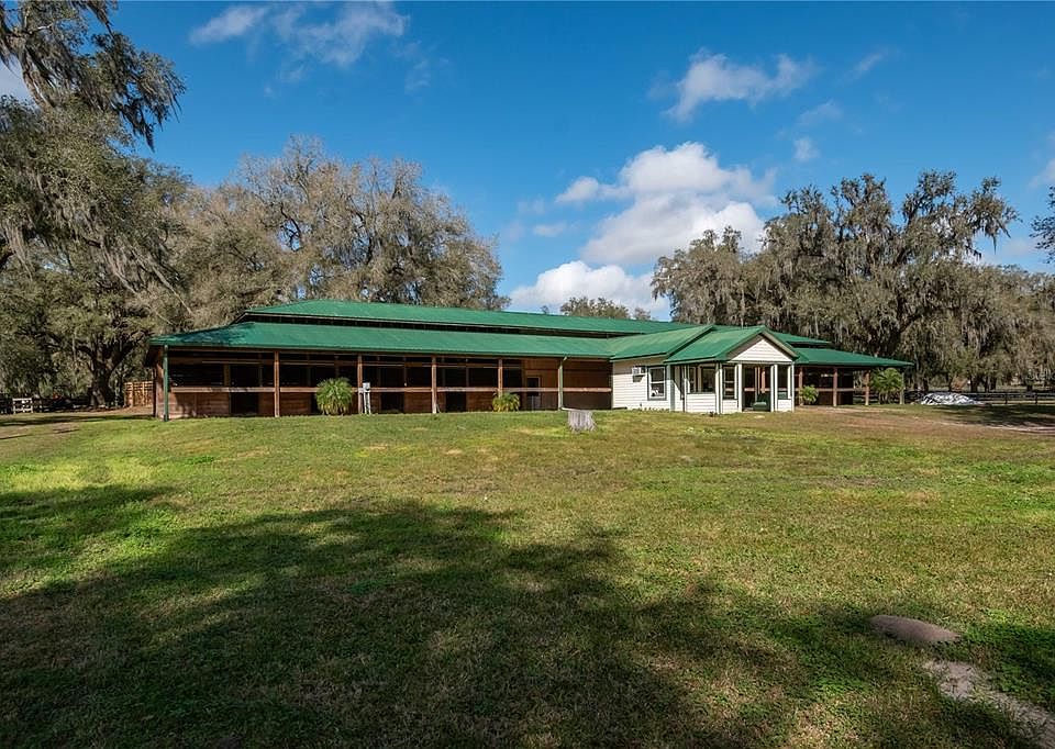 Train your champions on this beautifully maintained property in The Gallops community– Overlooking 25.62 acres of pristine countryside at the heart of Central Florida’s Horse Country, this offers a variety of amenities to horsemen looking to make their mark. Light roll and gentle shade from mature oaks make the property ideal for training and year-round usage. A shedrow-style barn provides a total of twenty 12x12’ stalls, providing ample space for horses. The barn is thoughtfully equipped and includes a feed room with concrete flooring, tack room, rubber pavers, fans, laundry with washer and dryer, lightning rods, fly spray system, and wash racks with hot water. The attached barn apartment provides a total of 2-bedrooms and 1-bath, fully equipped with air conditioning and kitchen. An additional office space features recently upgraded luxury vinyl flooring, a private half-bath, and an open-air covered porch, adding opportunities to run your business all in one space while separating out the personal and professional spaces. An elaborate double roof system ensures a cooler barn experience year-round, even during Florida's warmer months. 12 paddocks are established throughout the property, all of which are 3-board fenced and include waterers for added ease of care. An additional 6-horse eurocizer is also in place on the farm. A true draw is the 5/8 mile irrigated track, which has produced several Breeders Cup champions. Maintenance and electric are shared amongst the members of The Gallops community, and the track has had a recent overhaul to ensure quality. Paved roads run throughout the community for ease of travel to and from the farm and track. Located just a few miles West of the Ocala Jockey Club on Highway 318, and just a scenic drive from Ocala, Gainesville, and Williston's many shopping, dining, entertainment, and medical options, this farm offers a convenient option while maintaining privacy. With top-notch amenities and a proven track record, this meticulously maintained property is the epitome of excellence– seize your opportunity today!