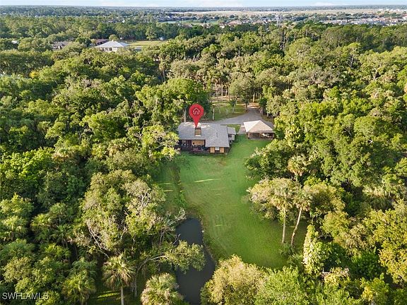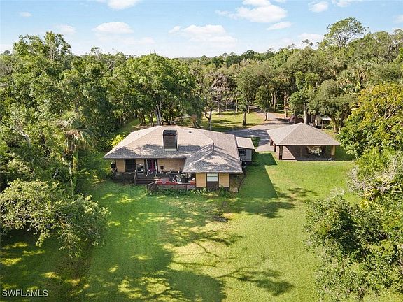 Tucked away in Alva with 1900+SF living space thoughtfully placed on 2.5 acres of tropical nature. This property features a pond, pole barn with electric and metal roof, storage building with metal roof, chicken coop and newer carport, recently re-paved driveway, electric hook-up for RV as well as a back deck for grilling and entertaining among the trees. The home's bathrooms and kitchen are updated with Stainless Steel LG appliances and offers an abundance of storage. Water heater, A.C. & duct work replaced in 2023, newer R.O. system under kitchen sink, roof replaced in 2024. Boat does not convey.