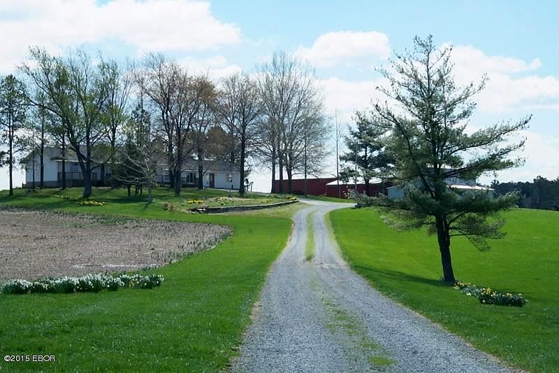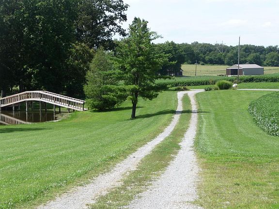 Farm house with 10 acres setting on Hill overlooking small lake and farm ground. Large 54 x 100 storage bldg, 38x32 barn and 16 x 24 storage building. Home has 4 bedrooms and 3 baths with custom made cabinetry, updated baths. Basement has bedroom and storage. Covered front porch with great view of lake area. Note: Inground pool has not been used in over 2 years, condition unknown.