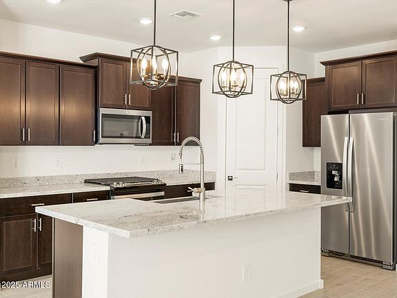 Built for Comfort and Connection! The Mason features an expansive great room that's perfect for movie nights, game-day gatherings, or simply relaxing with friends and family. Designed with open concept living in mind, this home offers the ideal space to unwind and entertain with ease and has umber cabinets with white/grey granite countertops, wood-look tile flooring with multi-tone carpet! INCLUDED-washer, dryer, window blinds, refrigerator and MORE! This GATED community provides easy access to the metro Phoenix area. EXCLUSIVE amenities include playground, ramadas, picnic tables, BBQ grills. Shopping, restaurants and entertainment nearby! Each home is built with innovative, energy-efficient features designed to help you ENJOY more SAVINGS!