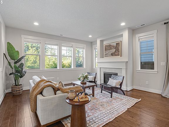 Brimming with natural light and style, this Tudor in River Terrace offers 4 bedrooms, 2.1 baths, soaring ceilings, and an open floor plan designed for easy living. A welcoming front porch sets the tone with sunrise and sunset views, plus plenty of bird watching, before leading inside to a great room with expansive windows and an elegant gas fireplace. The chef’s kitchen shines with quartz counters, a large center island, stainless steel gas appliances, and abundant storage, perfect for both entertaining and weeknight meals. The dining area opens to a private patio and fenced yard, ideal for al fresco evenings and space for your four-legged companions. Upstairs, the vaulted primary ensuite overlooks the habitat and lives like a retreat with a walk-in closet, soaking tub, dual sinks, and walk-in shower. Three additional bedrooms, a full bath, and a laundry room complete the upper level. A 2-car attached garage plus ample guest parking add convenience. The community offers tree-lined sidewalks, hiking trails, and parks, along with resort-style HOA amenities including a pool, gym, basketball court, clubhouse, entertainment room with kitchen, and a covered picnic area with BBQ. And do not let the Sherwood address fool you—Progress Ridge shopping, dining, AMC theaters, Big Al’s, Washington Square, and wine country are all just minutes away.