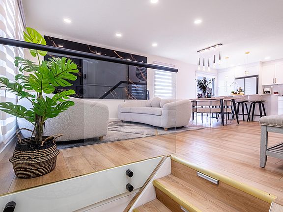 Corner lotOversized double garageSpacious yard and deckOpen-concept main floorDesigner porcelain feature wallGlass railingsBright dining area
