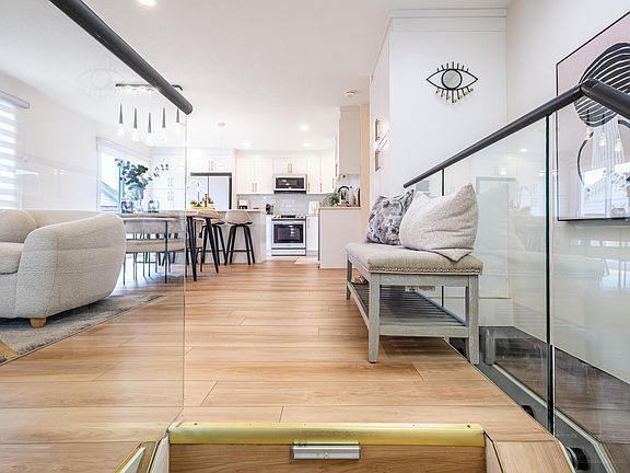 MOTIVATED SELLER. LARGE FAMILY..? Welcome to Baturyn's youngest home! The main floor showcases a bright living area with a striking DESIGNER PORCELAIN feature wall, sleek GLASS RAILINGS, chef-inspired kitchen with PREMIUM APPLIANCES next to a bright dining area ideal for gathering and entertaining. The primary suite offers a chic ENSUITE, situated next to two more bedrooms and full bath. The FULLY FINISHED basement impresses with a custom FIREPLACE/TV WALL + rec area, two bedrooms (one with ENSUITE + LOUNGE), and an additional full bath — perfect for family living or hosting guests. Nestled in a quiet, family-oriented community near schools, parks, and amenities, this home delivers sophisticated style and functionality on a CORNER LOT with an OVERSIZED DOUBLE GARAGE, spacious yard, and expansive deck — the perfect balance of LUXURY and LIVABILITY.