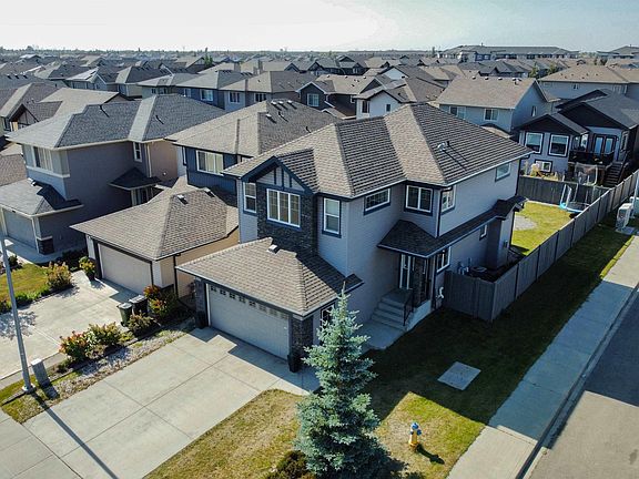 Priced to sell in Schonsee! Built by Bedrock Homes, this CORNER LOT property blends timeless design with modern comfort. The OPEN-CONCEPT main floor showcases luxury laminate flooring and a chef-inspired kitchen with granite counters, high cabinets, pantry, s/s appliances, and a sleek backsplash that ties into the elegant tile-surround gas f/p. OVERSIZED windows fill the home with natural light, enhancing its warmth and glow. Upstairs, the BONUS ROOM is bright, spacious, and ideal for family living or a home office. The primary suite offers a WALK-IN closet and a luxurious 5-pc ensuite with dual sinks, granite counters, JETTED TUB, and stand-up shower. Two add’l bedrooms, a full bath, and upper-floor laundry complete the level. Set on a CORNER LOT with extra windows, the home feels open and airy. Outside features a MAINTENANCE-FREE deck, stone patio, and a LARGE backyard perfect for relaxing or entertaining. Ample corner parking, unspoiled basement with FULL-SIZE windows, & CENTRAL AC complete the package