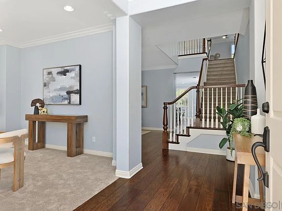 Located in the desirable neighborhood 4S Ranch, this immaculate 4-bedroom, 4.5-bathroom residence offers the perfect blend of luxury, comfort, & modern living. The home boasts exquisite finishes, including elegant wooden shutters, crown molding throughout & living areas that invite relaxation & entertaining. The primary suite is a true retreat, complete with a walk-in closet & a spa-like en-suite bathroom featuring dual vanities, a relaxing jacuzzi tub & a separate shower. A loft provides additional versatile space for work, study, or play. Each of the bedrooms is equipped with ceiling fans & custom closet systems, ensuring comfort & organization. Chef-inspired kitchen is a culinary dream with sleek Quartz countertops, a stylish glass tile backsplash, a pot filler over the 6-burner gas range and a charming breakfast nook. Ideal for entertaining, the home includes both formal living & dining rooms, in addition to a cozy family room. A full bedroom and bathroom on the lower level offers privacy for guests, in-laws, or the perfect home office setup. Enjoy year-round comfort with dual-zone air conditioning, a whole-house fan & the option to step outdoors into your private oasis. The backyard features a gas fire pit and a sparkling saltwater pool with a gas heater & solar collector, ensuring endless enjoyment. This eco-friendly home is equipped with two owned solar systems generating 17,800 kWh/year, a newly installed tankless water heater & a NEMA-1450 outlet for electric car charging. Garage is optimized with storage racks to maximize space. Award-winning schools.