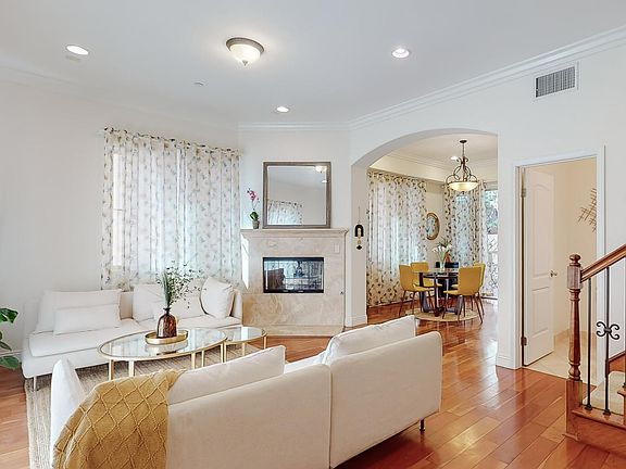 Beautiful end unit 3 bedroom townhome situated in a private gated complex! As you walk in the front door, you are welcomed by the spacious living room with fireplace and sliding glass door leading to a private patio overlooking the peaceful courtyard. The kitchen, dining room, living room and a half bath are located on the main level. Upstairs offers two bedrooms, including the primary bedroom, and each has a balcony and bathroom. The third bedroom is downstairs with an en suite bathroom. The kitchen features custom cabinets, granite counter tops, and stainless steel appliances. The outdoor patio located off of the kitchen allows you a delightful place to dine al fresco. Other features include cherrywood floors, crown moldings, stainless steel fixtures, dual pane windows, 2-car direct access garage and loads of storage. This smart home allows remote access of lights, garage and central heating/air which are controlled through the Nest thermostat to keep you comfortable all year round. There is a common area rotunda which can be reserved for social events. The ideal location provides easy freeway access and is in convenient proximity to Starbucks, shopping, movie theater, restaurants, parks - and just minutes to the best beaches in LA. All of this and a top-ranked school district! Don't let the address fool you - this is a quiet unit, nestled within the complex and located off the street. Hurry - this one won't last!