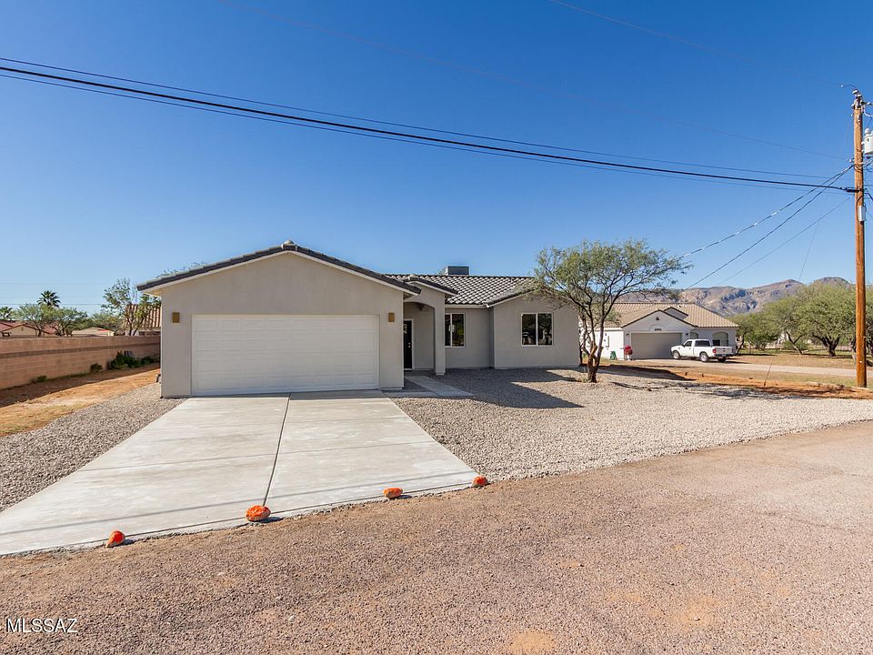 Welcome to this newly constructed 3-bedroom, 2-bath residence with no HOA! You're welcomed by a 2-car garage, a low-maintenance landscape, and majestic mountain views that provide a picturesque backdrop. Inside, you'll find a desirable open layout with a soothing palette, recessed lighting, and attractive wood-look flooring. The well-appointed kitchen boasts quartz counters, custom shaker cabinets with crown moulding, chic light fixtures, brand-new stainless steel appliances, a pantry, and an island with a breakfast bar. The primary bedroom features an ensuite with double vanities, a raindrop shower, and a walk-in closet. Imagine calm evenings in the backyard, which offers a covered patio and ample space for crafting your dream outdoor oasis. Don't miss out on this incredible gem!