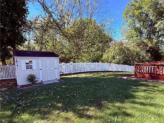 Partially fenced yardFamily roomSun-filled wooden deckNice landscapingElegant brick fireplaceBeautiful bay windowLots of cabinet space