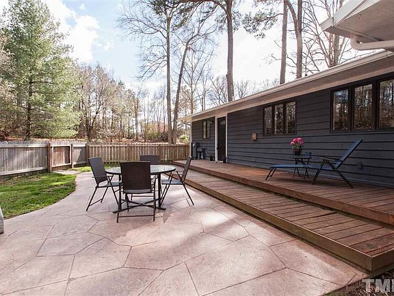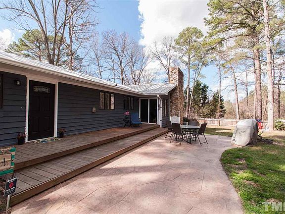 Spacious 4 bedroom, 3 bath ranch home on large .99-acre lot. Circular driveway, fenced yard with stamped concrete patio & deck. Huge kitchen offers granite counters, SS appl's, slate flr, butcher block island & tons of cabinets. Adjoining din & liv/keeping area w/bamboo flr. Large fam rm w/stone FP, laminate flr & access to deck. Lrg master has walk-in closet & private bath. Metal roof w/lifetime warranty, no carpet in home-great for allergies. Only minutes to downtown Raleigh, Knightdale, I-540 or I-440