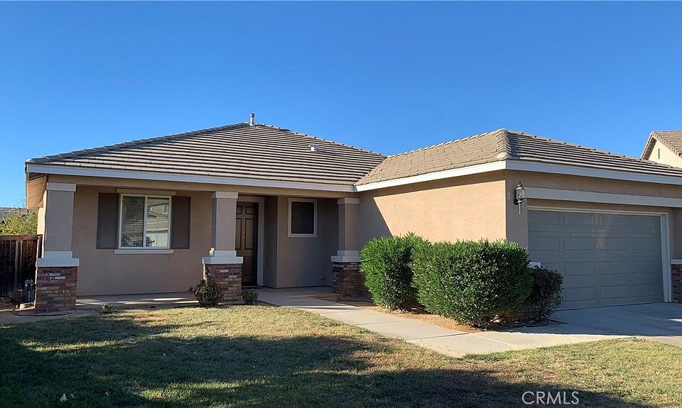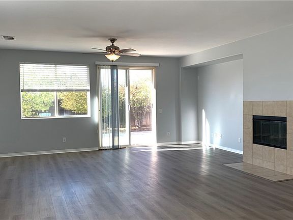 This charming 3-bedroom, 2-bath home is situated on a quiet cul-de-sac in a peaceful community. The spacious backyard features a large concrete patio, perfect for outdoor activities or simply relaxing in the sun. Inside, you'll find a generous living room with a cozy fireplace, a bright kitchen with an island, a spacious primary bedroom, and high ceilings throughout creating an inviting and comfortable atmosphere that truly feels like home.