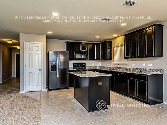 Home Features and Amenities: Air Conditioning, Fenced Yard, Garage, Granite Countertops, Kitchen Island, Long Lease Terms, Pet Friendly, Recessed Lighting, Smart Home, Tile, W/D Hookups, and professionally managed by Invitation Homes.