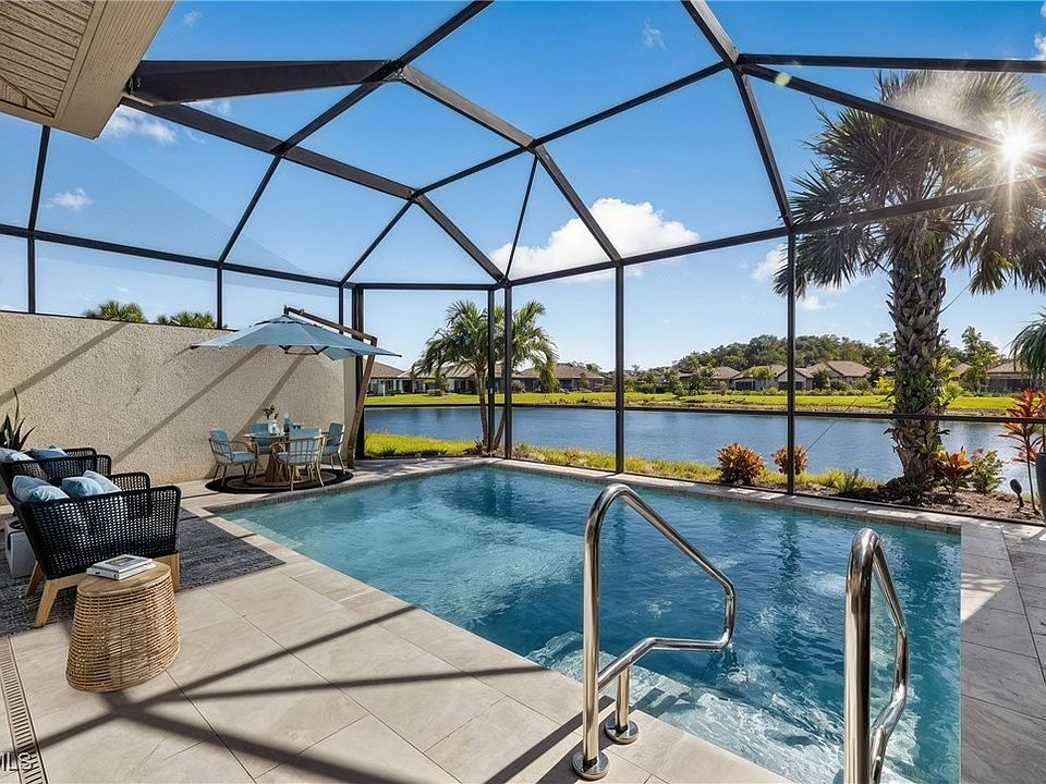 Peaceful lake viewPrivate screened lanaiQuartz countertopsSparkling poolExtended covered lanaiOpen floor planTravertine stone deck