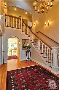 Radiating polished sophistication, this stunning East Coast Traditional masterfully combines a traditional setting with classic design. Welcomed by a dramatic 2 story entry, the sunfilled home is enhanced by vaulted beamed cathedral ceilings, wood floors, French doors, oversized common rooms, 3 fireplaces & a gourmet kitchen with marble island, custom cabinetry & formal butler's pantry. Reminiscent of a day spa, the luxurious master bath features a jetted tub, steam shower, water closet & dual vanities. An outdoor entertainer's lifestyle is embodied in the lush grounds. Mature landscaping adds additional privacy to the 1/2 acre lot which features a fenced sparkling pool/spa, covered patio & built-in barbecue. Completing the incredible estate is a 2 story full guest house (apx 900 sq ft included in total sq ftg above) with fireplace & balcony. Other amenities include generously sized bedrooms, maid's/guest quarters, formal dining room incredible indr/outdr flow & gorgeous curb appeal.