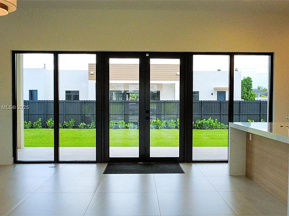 Modern luxury new construction with flat TPO roof, hurricane-impact doors/windows, and guest quarters. Spacious 16,000 sq ft lots feature a modern entrance, sealed polished concrete driveway with turf, 2-car garage, landscaped yard, irrigation system, and front/rear covered terraces. Interior offers high ceilings, porcelain floors, wood interior doors, recessed lighting, 2 tankless water heaters, 2 A/C units, and designer light fixtures. Gourmet kitchen with ceiling-height cabinets, quartz waterfall island, stainless steel cooktop, drawer microwave, hood, dishwasher, and smart refrigerator. Bathrooms with quartz vanities, main suite with glass shower and walk-in closet, plus energy-efficient washer/dryer.