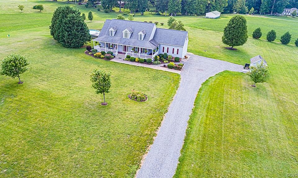 Come enjoy peaceful, country living in this stunning move-in ready Cape on over 10 acres in Hanover County! Offering 4 bedrooms, including a 1st floor master suite, 3 full baths & 3,100 SF of living space! The exterior boasts a two-car side entry garage, sweeping country front porch, detached storage shed, huge rear deck with large above ground pool and large rear paver patio that is completely private and ready for you to relax or entertain! The pristine interior offers a spacious 2-story family room with hardwood floors & gas fireplace, gourmet eat-in kitchen with all the bells & whistles including, granite counters, stainless appliances gas cooking, island and pantry and a formal dining room with hardwood floors & traditional moldings. The first floor has the master suite and another bedroom. The master includes a bay window, walk-in closet & en suite with double vanity & soaking tub. The 2nd floor includes 2 more bedrooms, a full bath and a large recreation room that has its own entrance. This home offers tons of storage space and all the privacy you have been looking for! This property would be a perfect spot for horses or someone looking for quiet, country living!